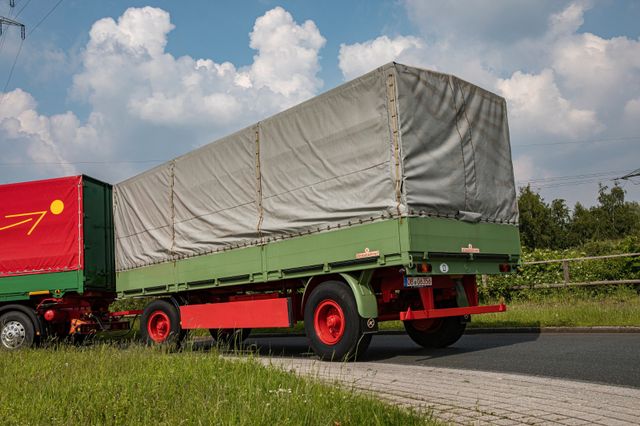 Dieser 16 Tonnen Zweiachs-Anhänger des Typs V 12 ist der absolute Wahnsinn. Er wurde 1979 neu angeschafft, aus Ulm abgeholt, in einer Speditionshalle abgestellt und geriet dann bis 2023 in Vergessenheit. Als der Besitzer dann verstarb, kam der „Lastenträger“ fast unversehrt aus seinem Dornröschenschlaf zum Vorschein. Warum allerdings der Anhänger neu gekauft und dann vermutlich nie benutzt wurde ist leider nicht bekannt. Der außergewöhnlich gute Zustand ist auf den Bildern bestens zu erkennen, die originalen Michelin Reifen sehen aus wie gerade frisch aufgezogen. Das Bordwerkzeug ist noch original verpackt und unbenutzt, Schmutzfänger, Rückleuchten, Schilder, EINFACH ALLES IST IN EINEM PERFEKTEN Traumzustand. Wer also einen „neuen“ alten Anhänger ohne Restauration sucht ist hier genau richtig. Einen vergleichbaren Fund wird es vermutlich nicht noch einmal geben. --Irrtümer und Zwischenverkauf vorbehalten-- Weitere Angebote, rund um das Historische Nutzfahrzeug, finden Sie unter www.nvc-oberhausen.dezum Angebot auf mobile.de
