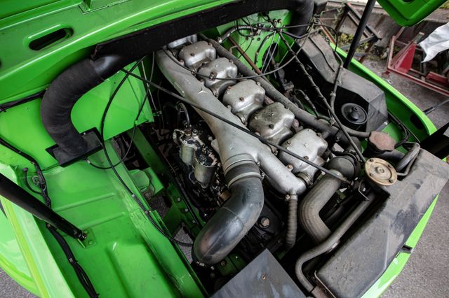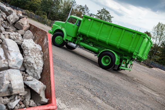 Ein wirkliches Highlight stellt dieser seltene LAK 1620 dar. Das Fahrzeug wurde vom Vorbesitzer mühevoll ohne Rücksicht auf Kosten, restauriert und im Laufe der Restauration mit einem Multilift-Seilgerät versehen, der eine Aufnahme von Behältern bis zu 5000 mm ermöglicht. Die Abrollfunktion des Behälters wird mittels Seilzügel gesteuert, die Kippfunktion erfolgt über 2 hydraulische Stempel, die das Fahrzeug auch als Hinterkipper nutzbar machen. Der 1620 stammt aus dem Jahre 1967, er dürfte einer der letzten Vertreter, mit flacher Frontscheibe, sein. Vereinzelt wurde der 1620 bereits in der laufenden Produktion mit hoher Frontscheibe ausgeliefert, bevor offiziell der 1623 als Nachfolger, mit hoher Frontscheibe präsentiert wurde. Das Fahrzeug stammt aus einer Sammlungsauflösung und wird selbstverständlich von uns mit H-Kennzeichen angeboten. --Irrtümer und Zwischenverkauf vorbehalten-- Weitere Angebote rund um das Historische Nutzfahrzeug finden Sie unter www.nvc-oberhausen.dezum Angebot auf mobile.de