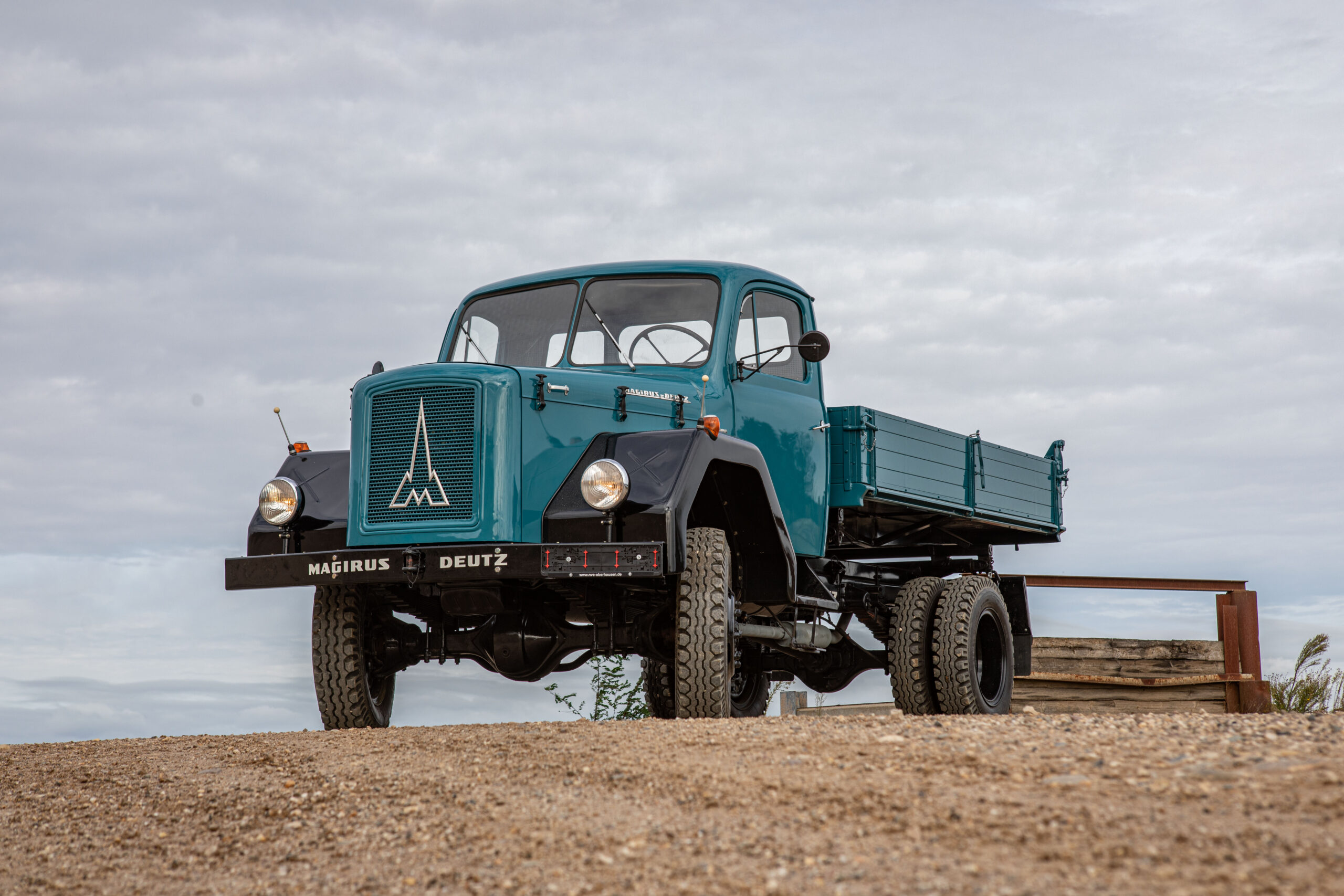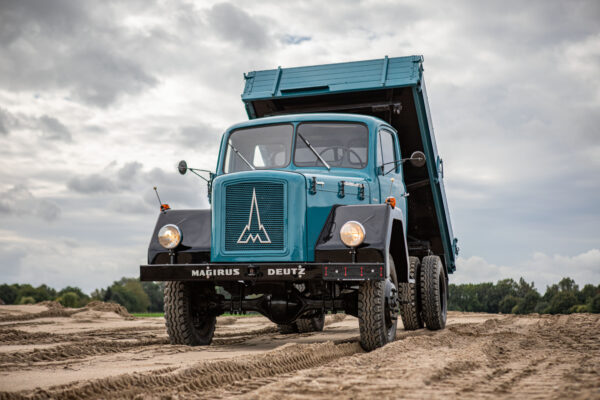 Besonders hervorzuheben ist der originale Innenraum, der aufwendig aufgearbeitet und neu gepolstert wurde. Ein echtes Highlight sind die Fußmatten aus altem Lagerbestand (NOS). Der Lack wurde in klassischem Magirus-Blau erneuert, vorhandene Beschädigungen wurden fachgerecht behoben.