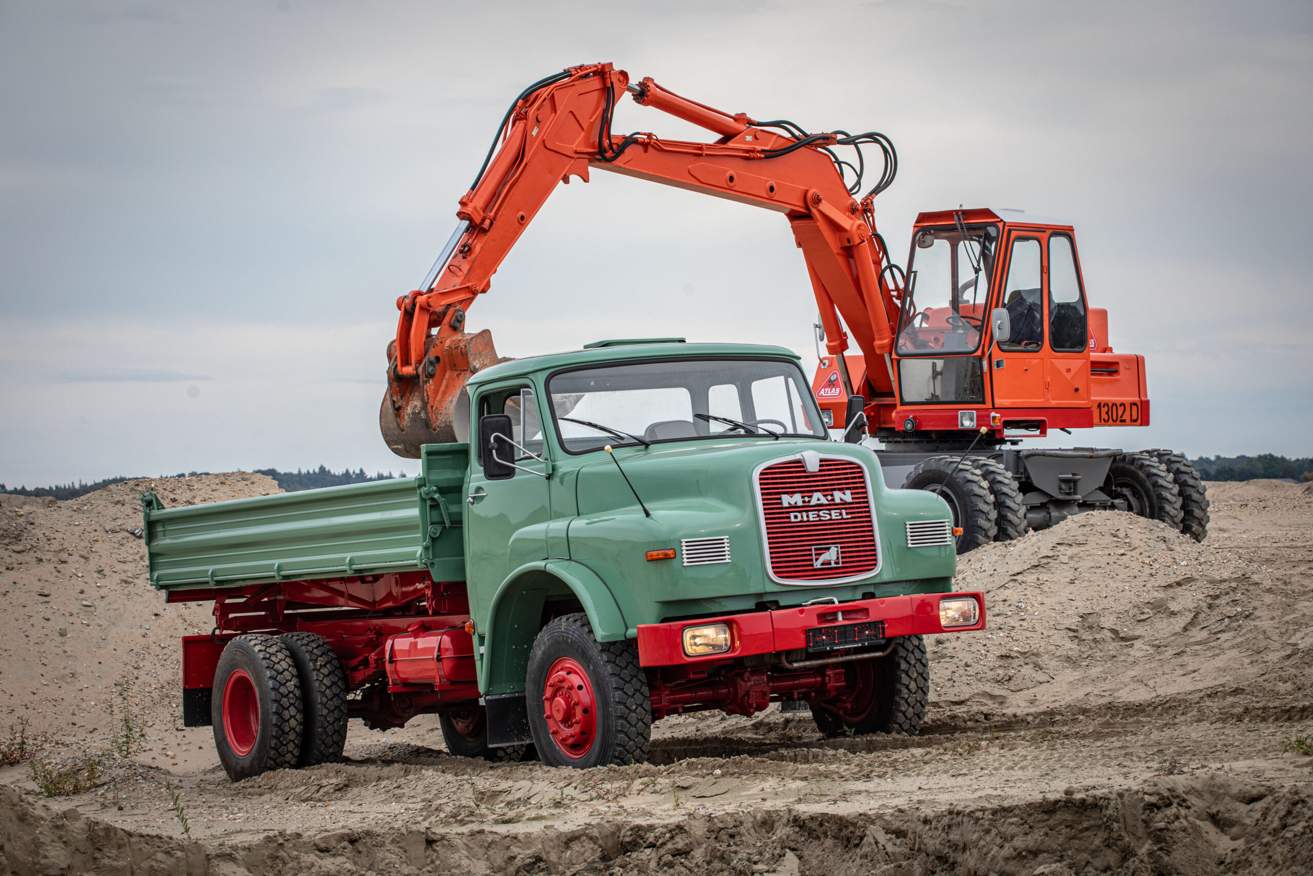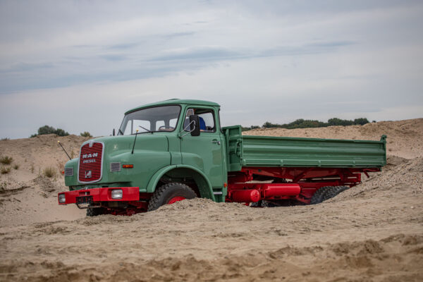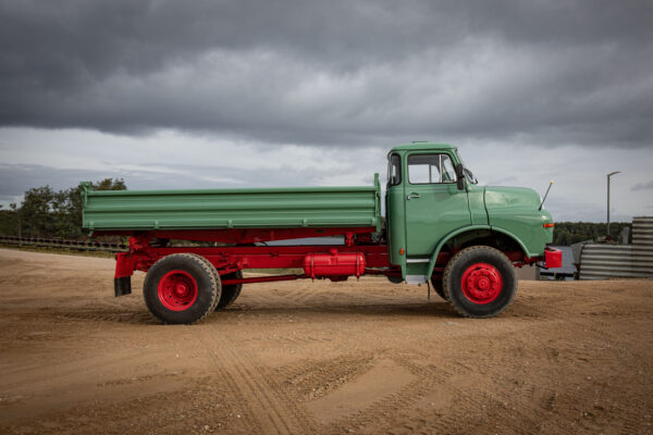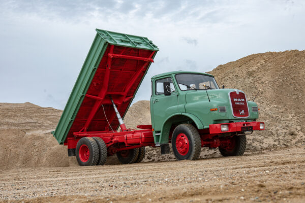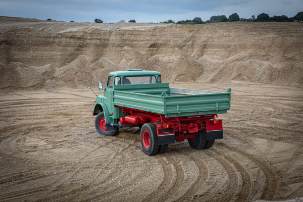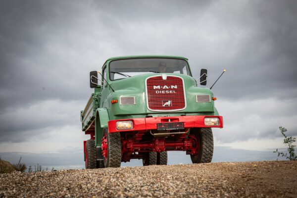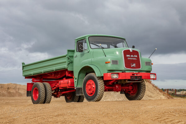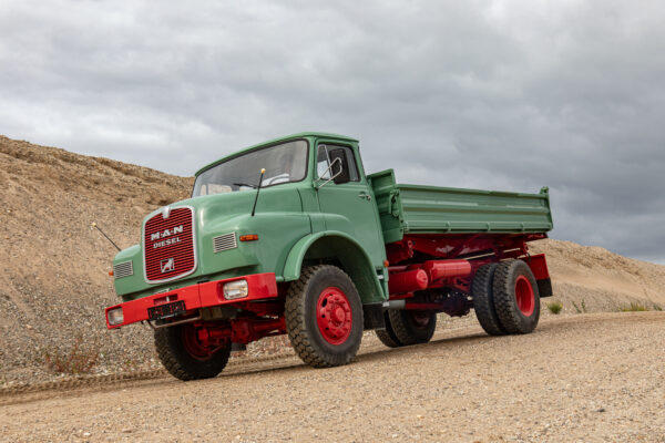 Diesen wunderschön teilrestaurierten MAN Kurzhauber konnten wir aktuell fertigstellen. Es handelt sich im Einzelnen um einen 15.168 HKA. Dieses Fahrzeug konnten wir als bereits begonnenes Restaurationsobjekt erwerben; wir haben es komplettiert, neu lackiert und technisch fit für eine Abnahme gemacht. Der Wagen ist mit einem Meiller-Kipp-Aufbau versehen, wurde erstmals am 4. August 1972 zugelassen und von einem Bauunternehmen in Alsfeld beschafft; dort war er bis 1991 im Einsatz, danach stillgelegt.